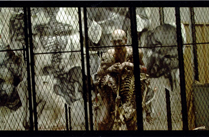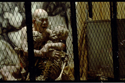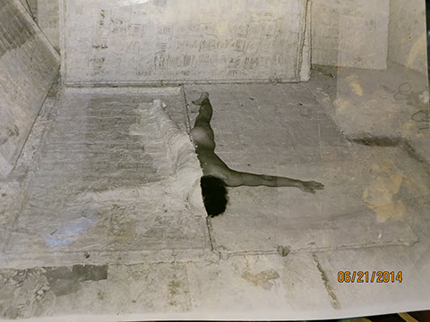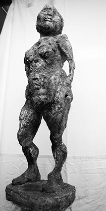 Left: Eternal Performance #10 - sculpture: (thirsty a-bombed suffering pregnant woman begging to drink black rain water)(Wikipedia link), 2018